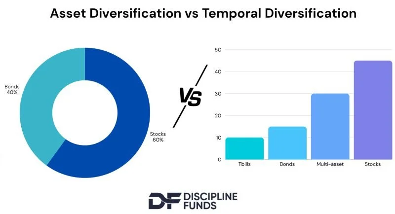 The chart on the left is a traditional presentation of asset diversification. The chart on the right is an ALM based presentation of temporal diversification. The chart on the right could be roughly 60/40, but unlike a simple 60/40 index its disaggregated components tell a very different story.